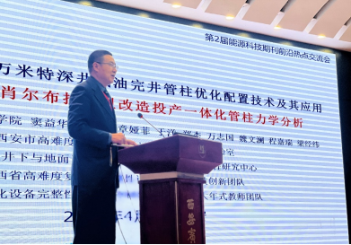 西安石油大学学术委员会副主任委员窦益华教授在大会主论坛作了题为《基于数字孪生的万米特深井试油完井管柱优化配置技术及其应用》的学术报告。窦益华教授结合我国万米特深井钻探工程需求,系统介绍了数字孪生技术在超深井管柱力学分析、优化配置及工程应用方面的最新研究成果,为解决特深井试油完井管柱安全高效运行提供了创新思路与技术路径,报告引发了与会专家的热烈讨论。