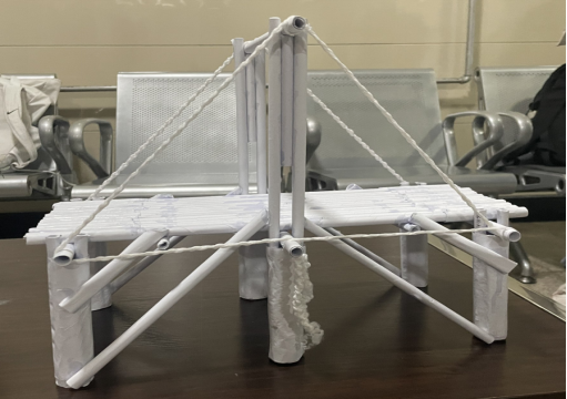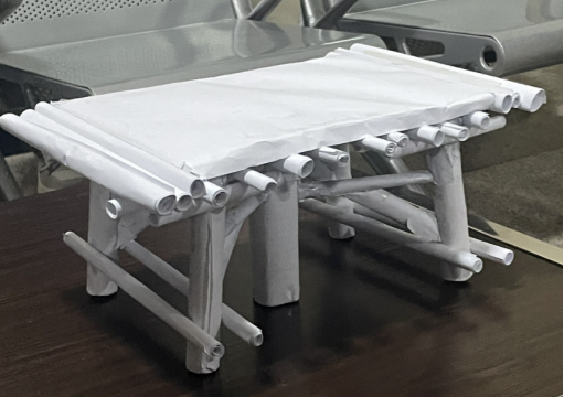 比赛现场,各队纸桥作品巧妙融合创意与力学原理,展现出扎实的专业功底与创新能力。例如,“纸韧拓新桥”采用三角桁架与卷纸筒立柱组合,在轻量化基础上实现荷载均匀分散;“纸艺虹桥”利用蜂窝状桥面与斜向支撑提升抗形变能力;“安澜桥”则借鉴斜拉桥设计,通过纸条拉索优化受力传递。此外,还有队伍运用多圆柱集群支撑、模块化拼接等设计,体现出多样化的工程思维。
