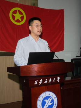 校团委副书记王军策应邀致辞。他首先向大会的胜利召开表示热烈祝贺,向学院全体师生致以亲切问候。王军策表示,机械工程学院作为学校 “双一流” 学科建设的重要支撑力量,在油气装备研发、智能制造等关键领域成果卓著,为我国能源行业高质量发展与地方经济建设注入了强劲动力。本次研究生代表大会的召开,是学院凝聚青年智慧、激发组织活力的重要机制创新,意义深远。同时,他对学院研究生会和全体研究生提出四点殷切希望:一是要胸怀家国、志存高远,将个人理想追求深度融入国家发展大局;二是要勇攀高峰、敢闯敢创,聚焦油气领域关键核心技术难题,潜心钻研、攻坚克难;三是要心系同学、服务大局,充分发挥桥梁纽带作用,切实为同学排忧解难;四是要严于律己、正心修身,锤炼清新阳光、务实担当的组织形象。他鼓励同学们立大志、明大德、成大才、担大任,在服务能源强国建设的伟大征程中绽放青春光彩。