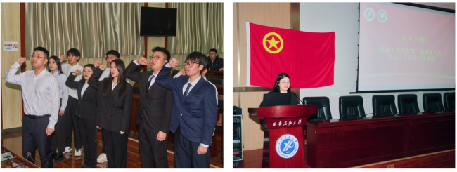 仪式环节,研究生团总支书记张琰杰带领新任学生干部庄严就职宣誓,铿锵有力的誓言彰显了青年一代的责任与担当。随后,第一届研究生会委员会代表庞雯雯作工作展望,描绘了学院研究生会未来发展蓝图,展现了研究生会服务同学、助力学院发展的坚定决心。